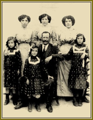 ![]() Apolinar Estévez (1858-1929), maestro de la localidad, con sus seis hijas. |