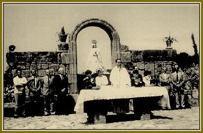 Santa Misa durante la primera Romería en el «Fresne», último domingo de mayo (1957). |